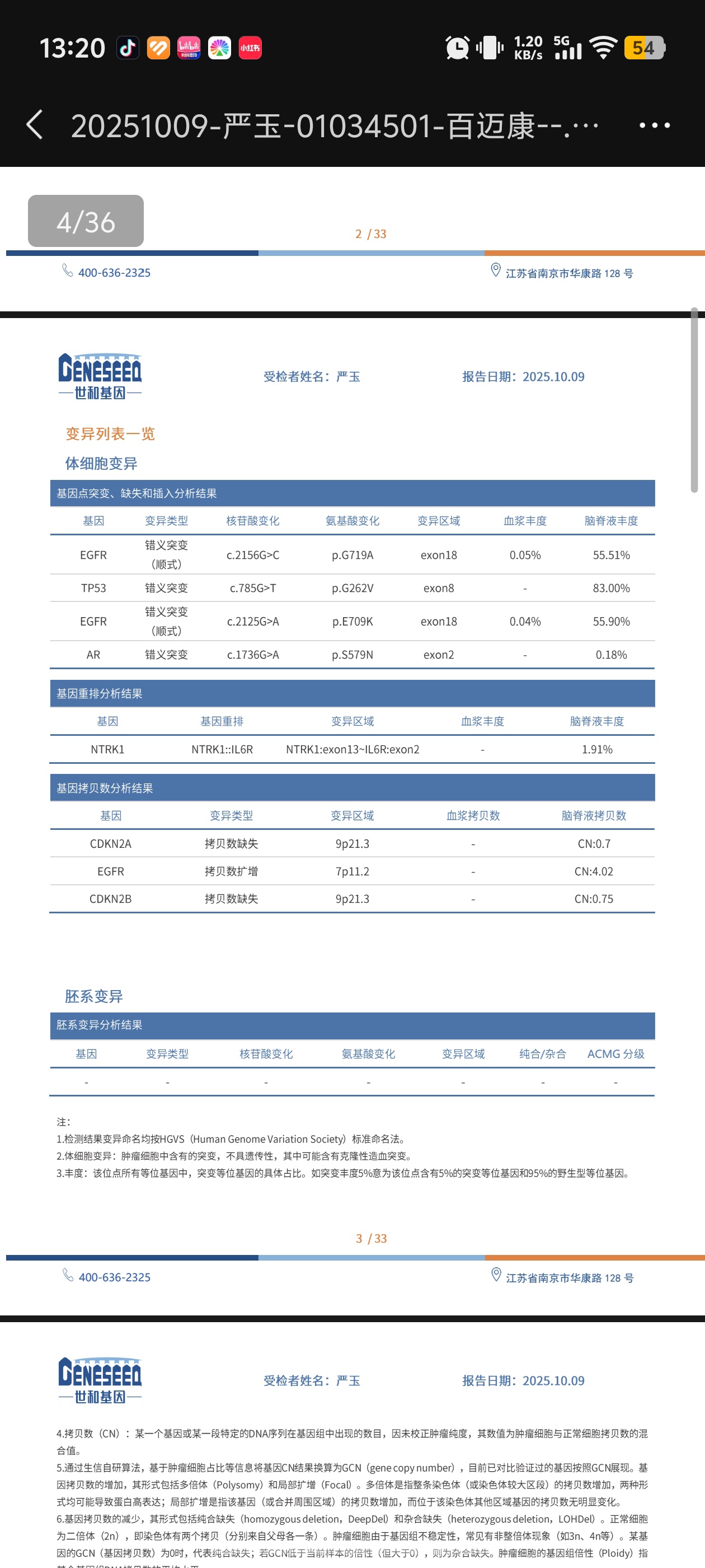 打小怪兽 发表于 2025-10-11 13:36* ^. V" @) k+ p, s7 o8 O 这次脑脊液的基因检测@地狱老师 @申医生 @阳光~ 麻烦老师们帮忙看一下