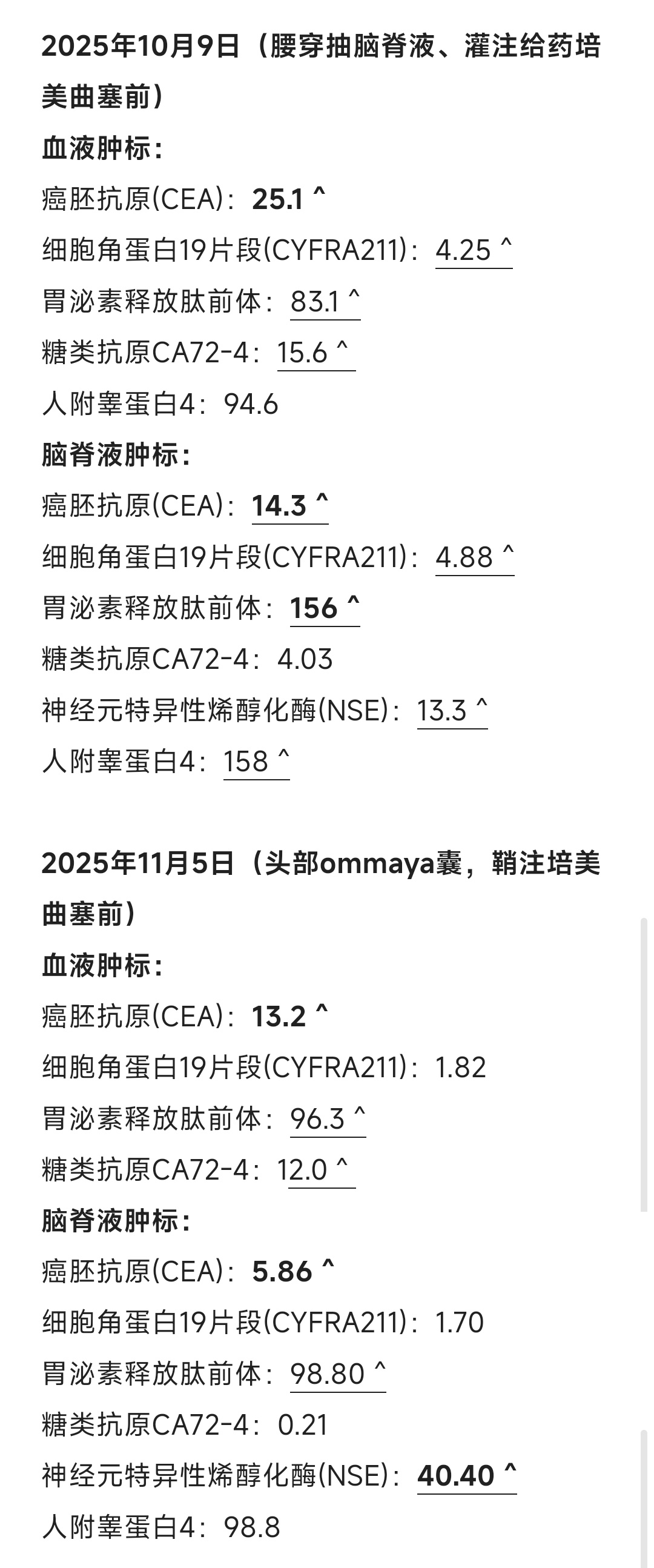 蔚蓝1 发表于 2025-10-20 13:416 \9 P2 H$ X) G* g1 c9 M 楼主,你家脑脊液里胃泌素的数值现在是多少?从治疗开始到现在是涨了还是降了了?我家的其他指标都很低了,只有胃泌素一直涨!